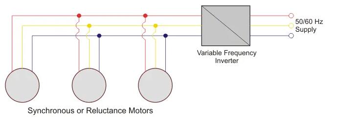 在這種方法中,同步電動機(jī)由變頻器以開環(huán)方式提供。所謂開環(huán),是指沒有反饋到電源。逆變器沒有有關(guān)轉(zhuǎn)子當(dāng)前位置的信息。當(dāng)不需要高精度的速度控制時,這種方法是可取的。來自電網(wǎng)的電源被饋送到整流器逆變器裝置中,在此處可獲得所需的頻率。根據(jù)頻率,可以改變電動機(jī)的同步速度。