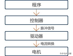 程序控制器(脈沖信號)驅(qū)動器(電流轉(zhuǎn)換)電機(jī)