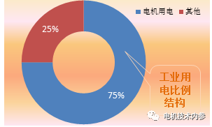 電極端電機(jī)用電量占我國電極端的比重最大,約占工業(yè)用電量的75%,占全國總用電量的60%。