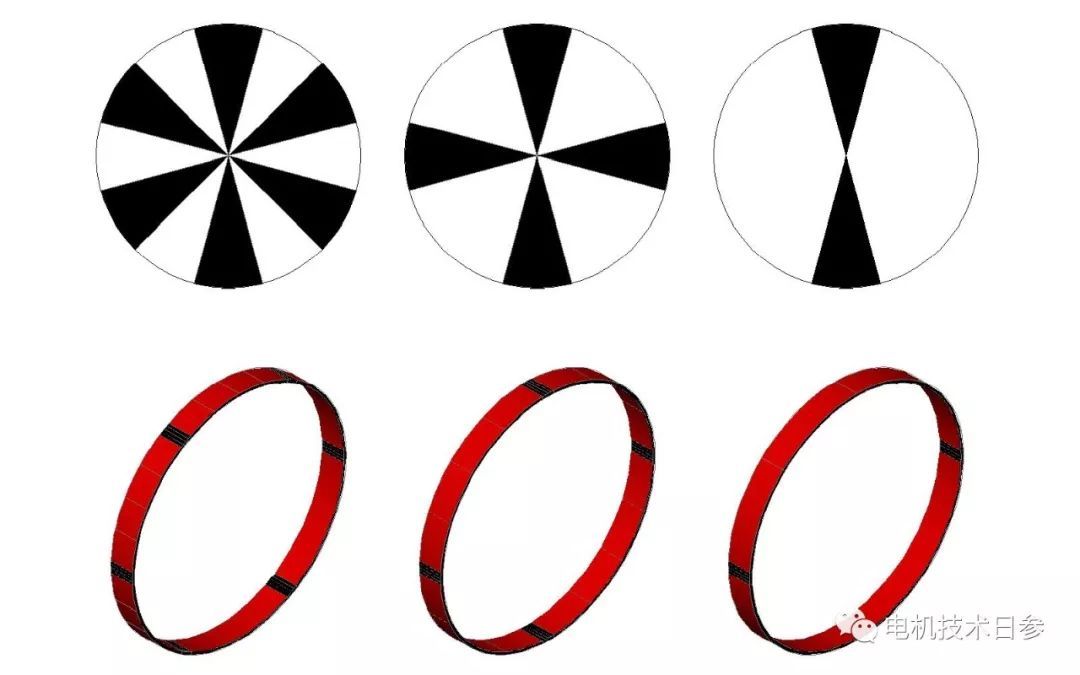 (1)安裝在被測電機(jī)軸伸端的皮帶輪端面或聯(lián)軸器側(cè)面應(yīng)涂有黑白扇形面或十字槽,扇形段數(shù)與電機(jī)極數(shù)相同,如下圖所示。