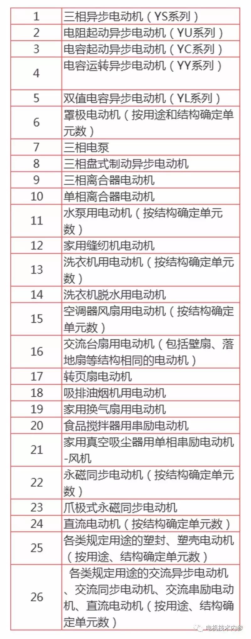 強(qiáng)制認(rèn)證的CCC電機(jī)目錄:低功率電機(jī)(僅適用于36V以上1100W以下(同步轉(zhuǎn)速轉(zhuǎn)換為1500 rpm)的產(chǎn)品),具體產(chǎn)品包括: